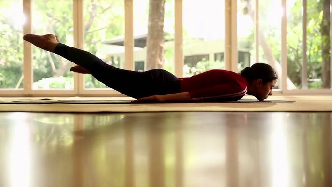 শ্বাস নিয়ে মাথা, বুক, হাত এবং দুই পা একসাথে উপরে তুলবেন,পা দুটি সোজা এবং সক্রিয় রাখবেন,আঙুলগুলো পেছনের দিকে টেনে রাখবেন।