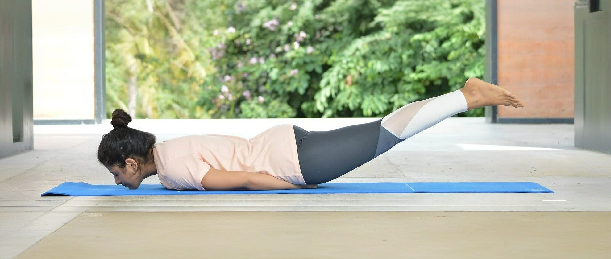 নিতম্ব ও উরুর পেশি শক্ত করুন, পেটের নিচের অংশ মাটিতে ঠেকানো রাখুন। গলা টানটান রাখুন – মাথা খুব বেশি ওপরে তুলবেন না।